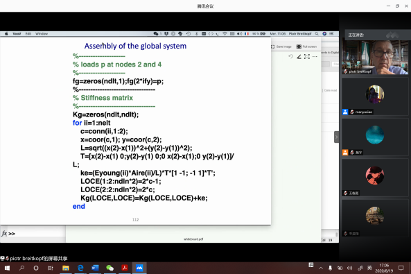2020年8月17日至8月28日,直播做爱 邀请法国贡比涅技术大学Piotr Breitkopf教授为我校师生在线讲授《动力学拓扑优化/Topology Optimization with dynamic》课程,该课程参与学习人数40人左右,24学时。