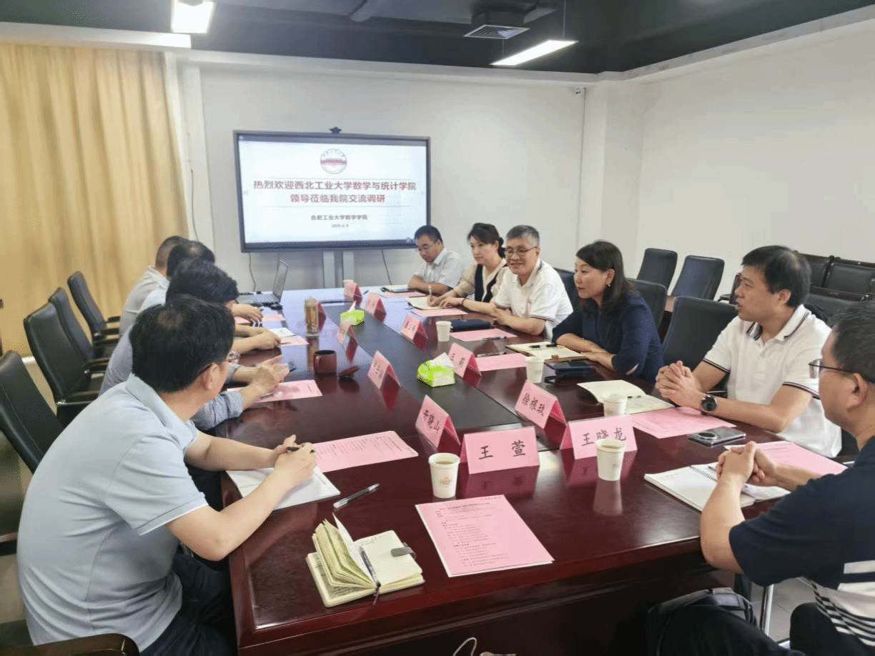 6月9日下午,学院一行前往合肥工业大学数学学院调研交流。合肥工业大学数学学院教授、国家级名师朱士信、党委书记范仁庆、副院长田可雷、副院长开晓山等参加了座谈。双方分别介绍了学院发展概况,并围绕教学队伍建设、实习基地落地、精品教材建设、人才引进等方面进行了充分的交流研讨。