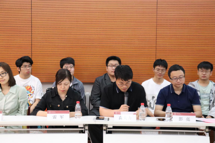 在师生交流环节中,计算机学院院长於志文首先对本学院获得特等奖的三名学生表示祝贺,并以学生代表发言内容结合自身经历,分享了个人在工大本科求学阶段连续两次参加学校数模竞赛的体会和感悟。他在总结中强调,在大学参加竞赛的机会是非常可贵的,希望同学们要好好把握这个重要的人生体验,时刻充满勇气与自信。通过不同的平台,磨练个人技能,突出自身特色,每个阶段都为自己树立目标并为之不断努力。於院长的发言,情深意切,令人深省,引得在场学生频频鼓掌。