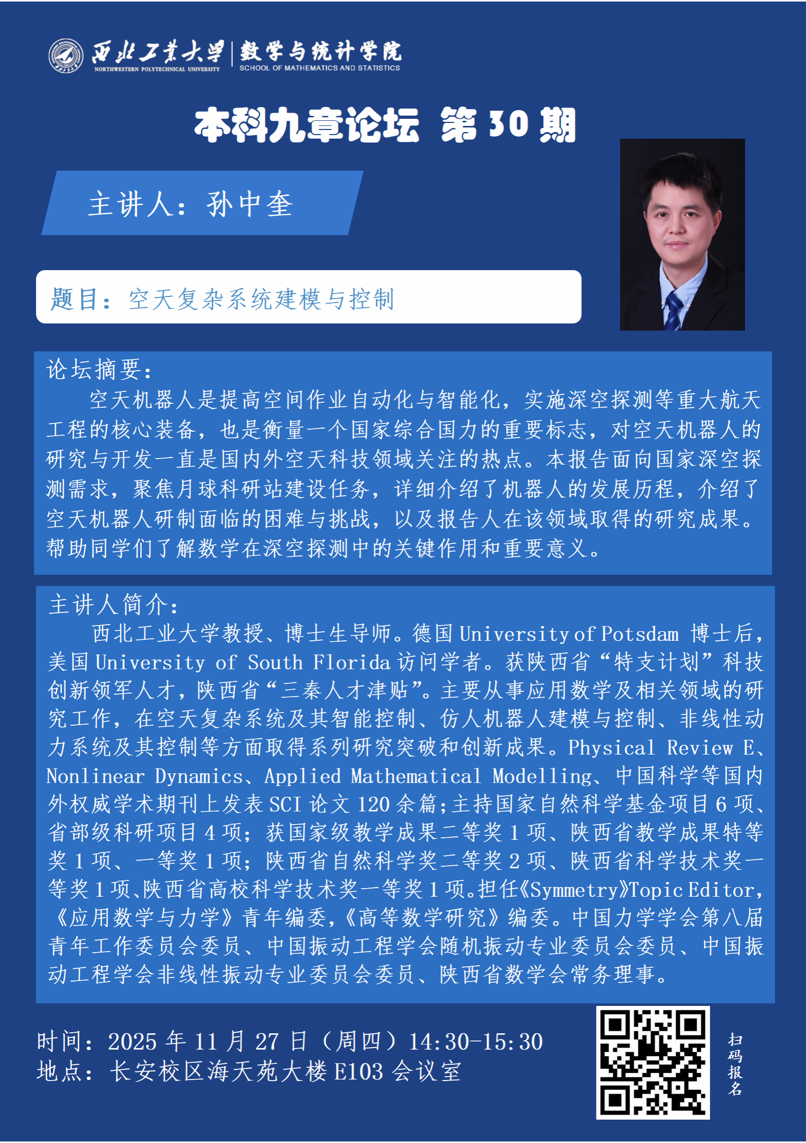 【本科九章论坛第30期】空天复杂系统建模与控制