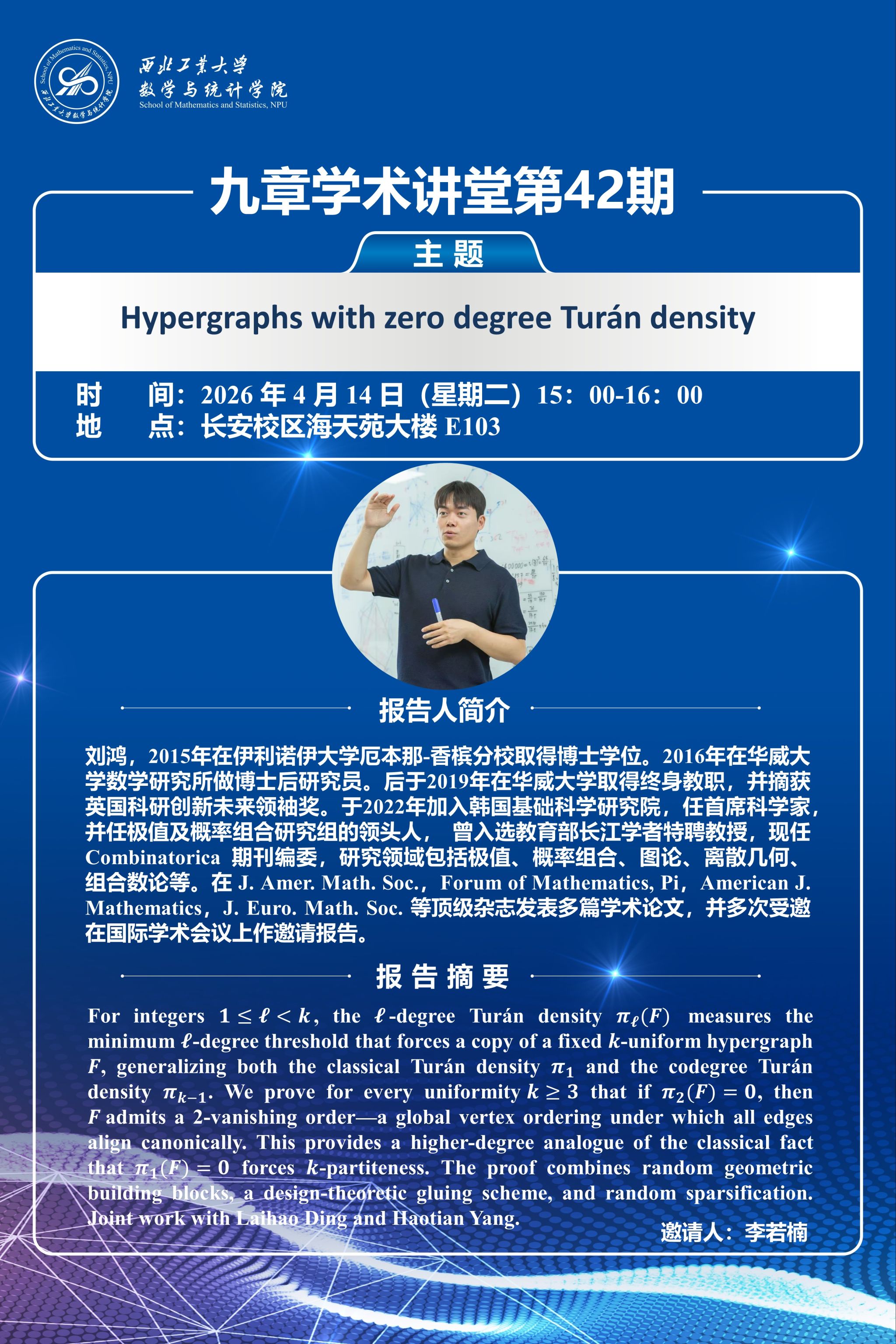 【九章学术讲堂第42期】 Hypergraphs with zero degree Turán density