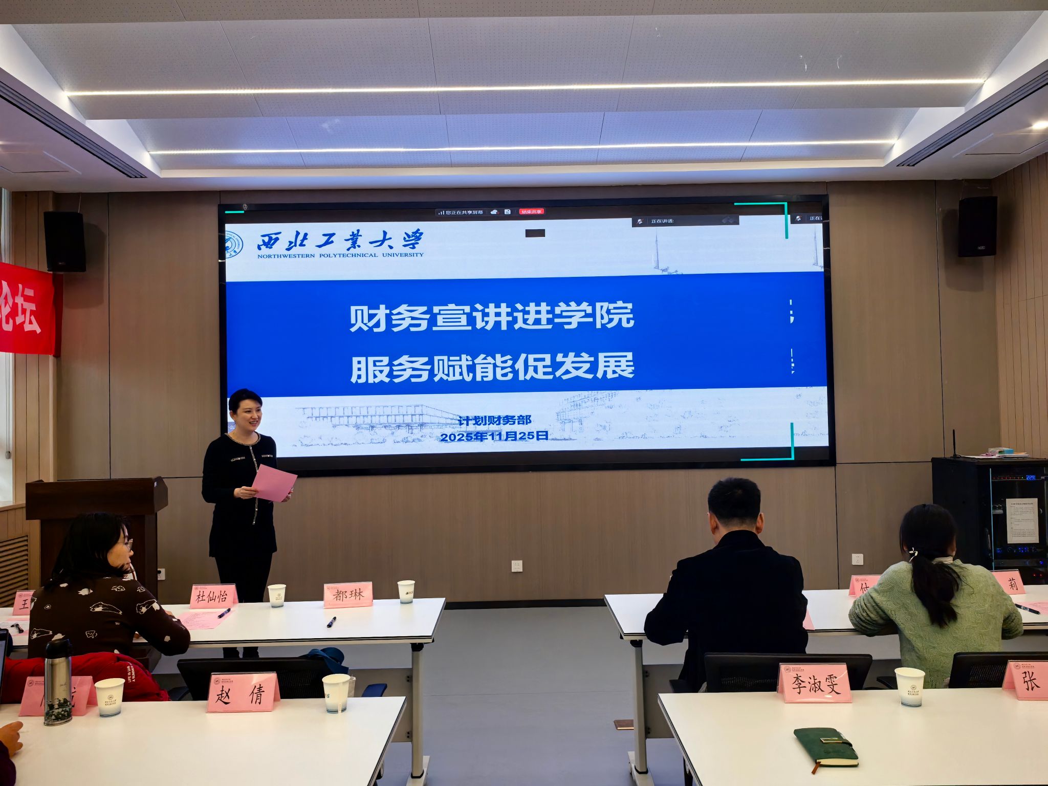 为进一步提升学院师生在采购管理、科研财务及日常报销等工作中的规范化操作能力,有效解决师生在财务业务办理中遇到的实际问题,2025年11月25日,直播做爱 邀请学校计划财务部开展财务专题培训。计划财务部副部长姚健、合同管理办公室主任王小宁、核算中心副主任付娆、科研财务科科员杜仙怡一行应邀莅临学院,为师生系统讲解财务相关政策与实务流程。直播做爱 党委书记王莉、副院长都琳、院办主任李淑雯、各科研团队师生代表及办公室管理人员等30余人参加培训。会议由都琳副院长主持。