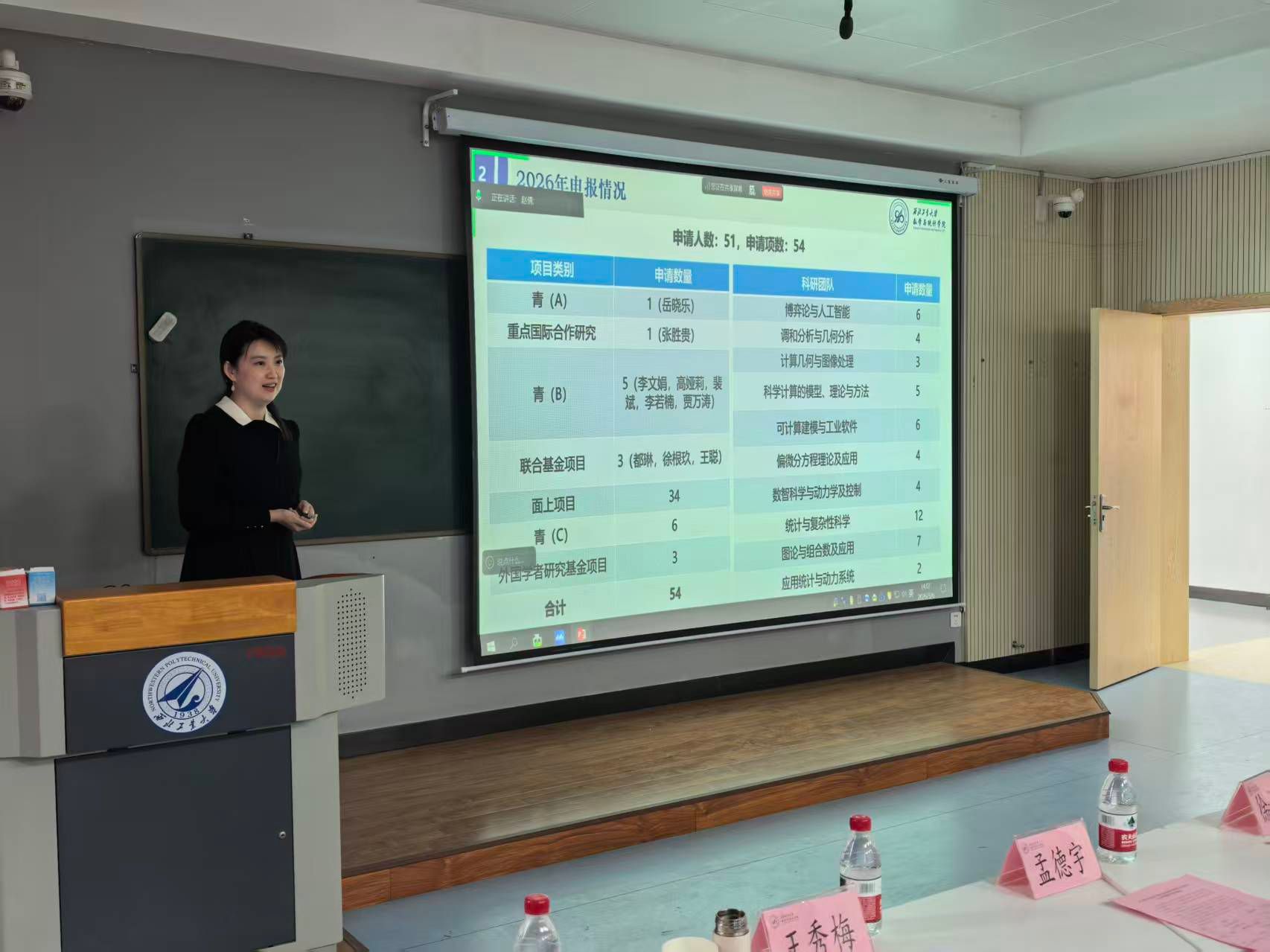 会议伊始,聂玉峰院长致辞。他对远道而来、倾力支持的各位专家表示热烈欢迎和衷心感谢。聂玉峰强调,国家自然科学基金是衡量基础研究水平的重要标尺,也是推动学科发展、培育创新人才的关键支撑。本次辅导会不仅是基金申报冲刺阶段的质量把关,更是助力青年教师科研能力提升的重要途径。他期望通过专家们“多对一”的深入点评和指导,帮助教师们精准对标学科前沿,有效解决申报书撰写中的关键问题,为高水平项目成功立项奠定坚实基础。随后,都琳介绍了学院近五年国家自然科学基金的立项情况、2026年度申报摸底情况、最新政策变化及后续辅导安排。她强调,学院将持续加强组织力度,精准服务教师需求,不断提高项目申报质量和竞争力。