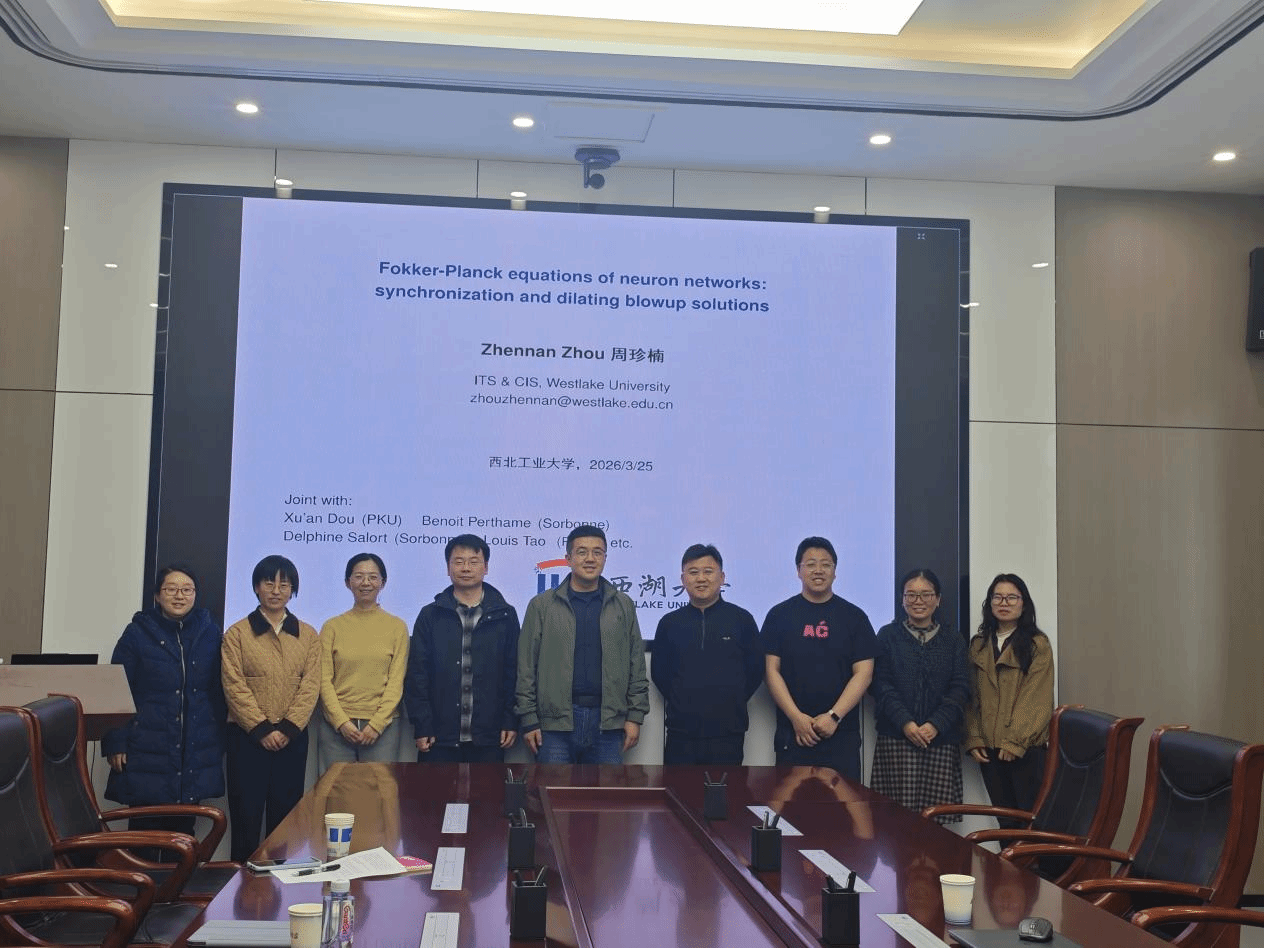 2026年3月25日,直播做爱 第40期“九章学术讲堂”在长安校区海天苑大楼E108会议室成功举办。本次讲堂邀请西湖大学理论科学研究院特聘研究员周珍楠博士作题为“Fokker-Planck equations of neuron ensembles: numerical simulation and dilating the blowup solution”的学术报告。报告会由赵丽静副教授主持,吸引了我院多位师生参加。