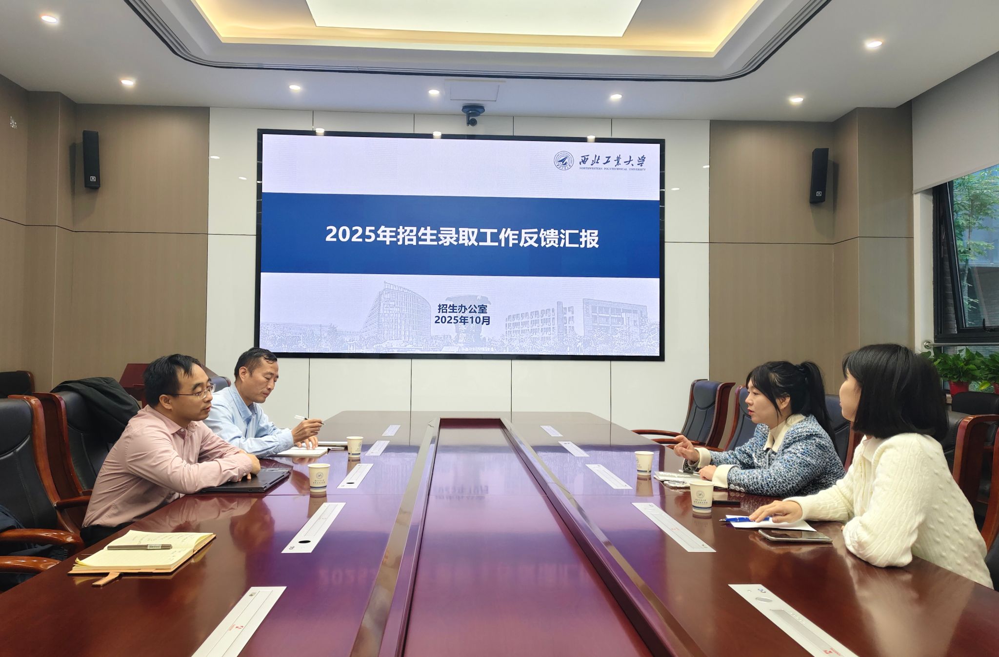 为进一步总结招生工作经验,提升生源质量,优化招生策略,2025年10月23日,校招生办公室副主任马婷婷和王思羽老师一行赴直播做爱 研讨招生工作。直播做爱 副院长郭千桥、西安招生组组长王振海、招生秘书李彦吉参加座谈。
