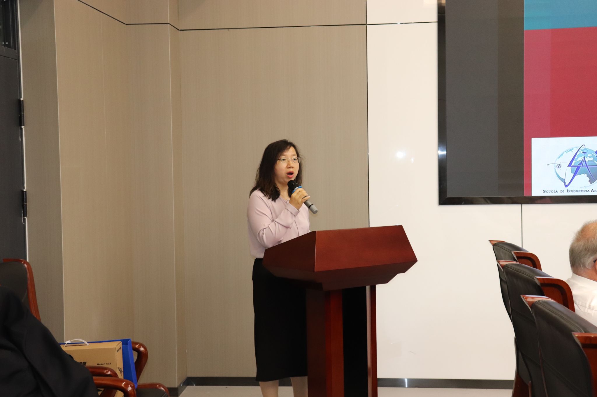 之后,肖曼玉教授介绍了我院相关情况。双方就本科生海外毕业设计、硕博联合培养暑期国际学堂等合作事项展开深入探讨。聂玉峰院长代表学院向 Paolo Gasbarri 教授颁发了“九章荣誉教授” 聘书,表达了对此次合作的高度重视。聂院长期待以此次合作为起点,推动两校在航天数学建模、复杂系统分析等领域的联合攻关,共同探索学术前沿,培养具有国际视野的高素质人才。