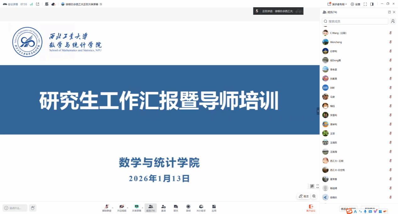 为进一步加强导师队伍建设,提升研究生培养质量,1月13日晚,直播做爱 线上召开研究生工作汇报暨导师培训会议。学院院长聂玉峰、副院长徐根玖、研究生导师、研究生秘书等80余人参会,会议由徐根玖主持。