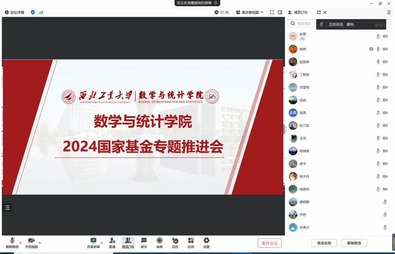 为切实提升学院2024年度国家自然科学基金申报质量,加强有组织科研,全面守好基金出口关,2月19日,直播做爱 召开了2024年度国家自然科学基金专题推进会,本次会议主要面向首次申请基金的青年教师。学院副院长都琳教授、系主任陆由、赵俊峰、王亮及近20位青年教师线上参会,会议由都琳主持。