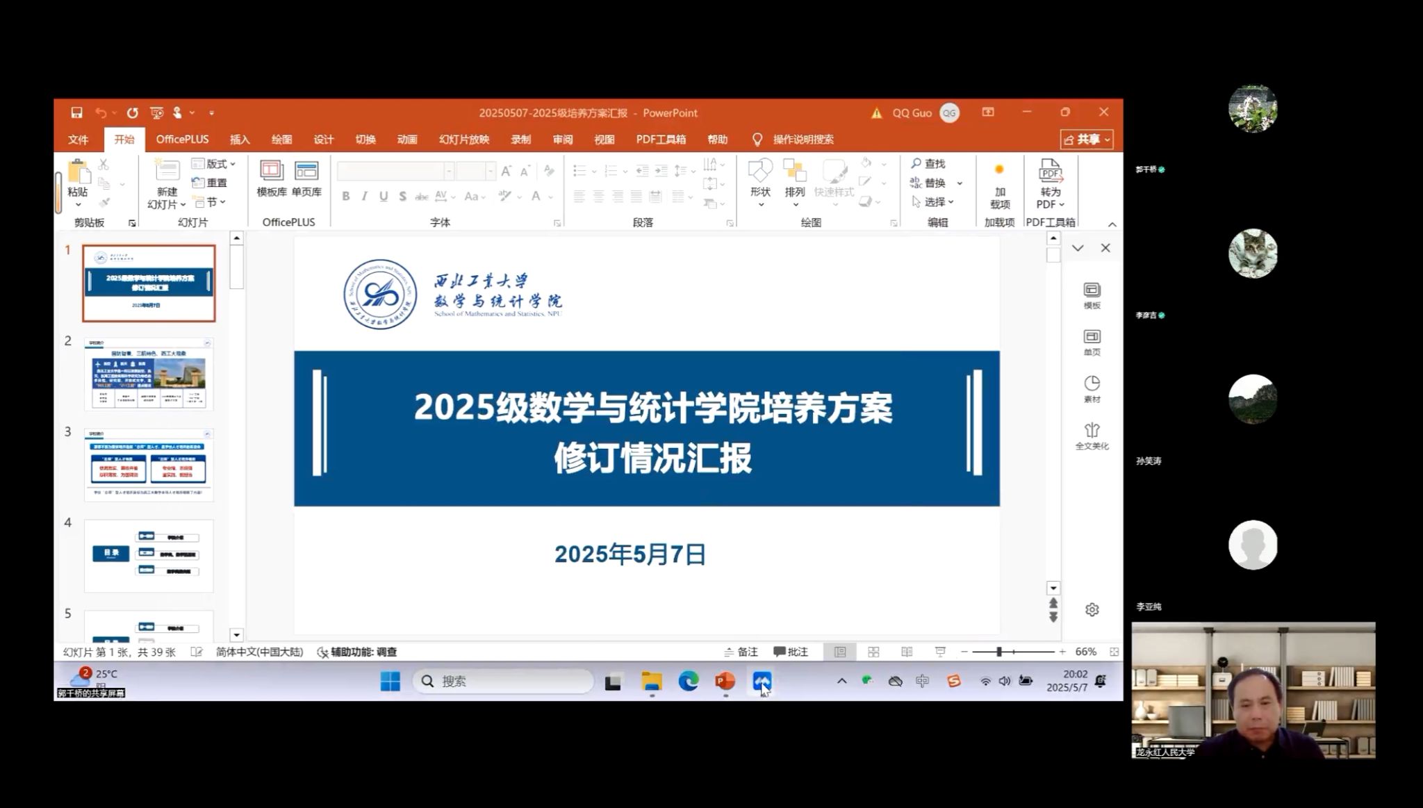 为深化教育教学改革,全面提升本科人才培养质量,推进“总师育人文化”走深走实,直播做爱 于2025年5月7日晚通过腾讯会议线上召开“2025级本科人才培养方案论证会”。会议特邀教育部高等学校教学指导委员会专家——复旦大学吴泉水教授、北京大学李若教授、中国人民大学龙永红教授、西安电子科技大学刘三阳教授、天津大学孙笑涛教授、北京航空航天大学韩德仁教授及上海交通大学李亚纯教授组成论证专家组,对培养方案进行指导。学院院长聂玉峰、副院长郭千桥、数学科学系主任陆由、计算科学系主任赵俊锋、应用概率统计系主任王亮及教学秘书李彦吉全程参会。会议由郭千桥主持。