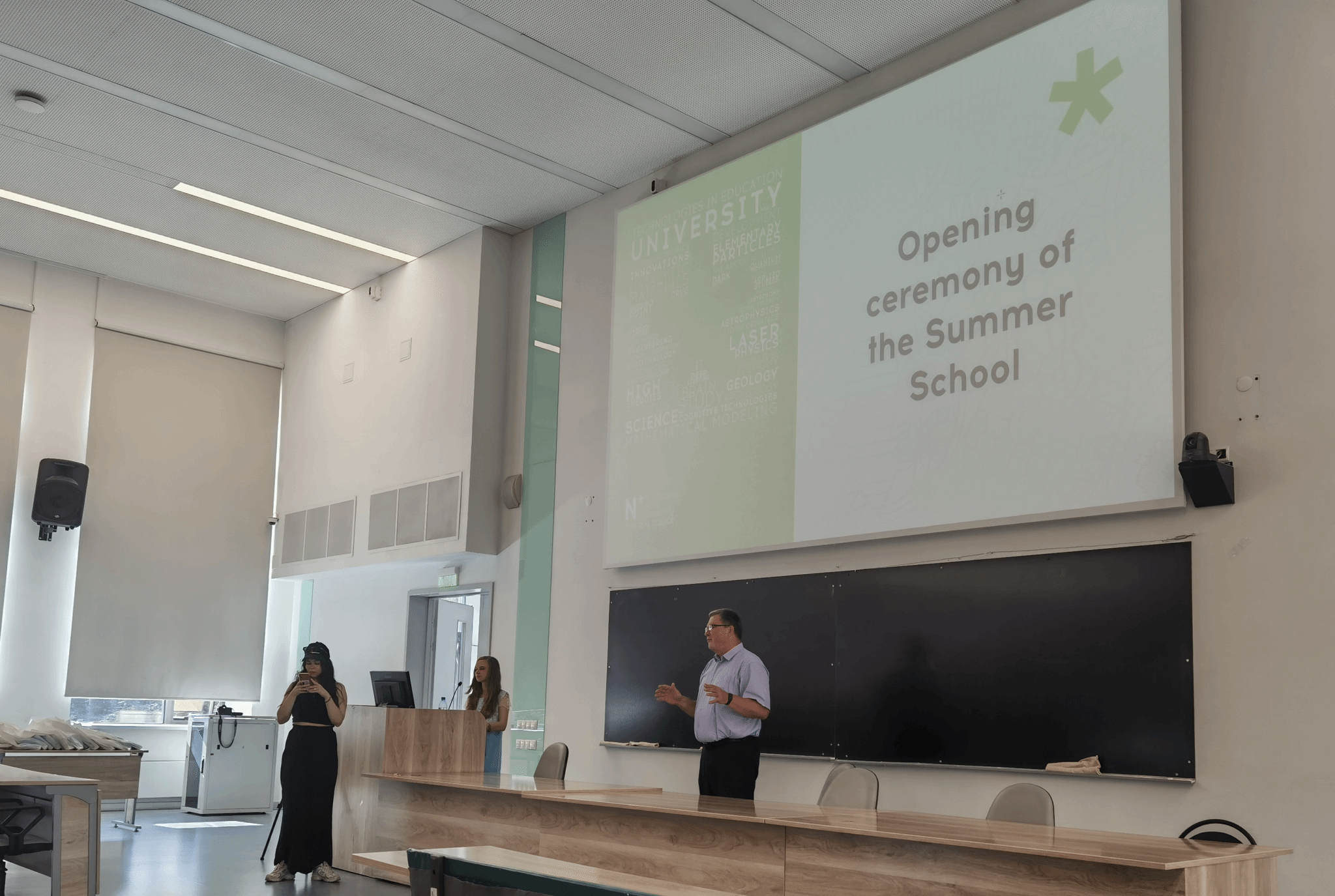 在开营仪式上,新西伯利亚国立大学不仅对学生们的到来表示热烈欢迎,还为每位同学发放了精美的文化衫和学习用品。随后,Ravi Kumar教授为学生们讲授了机器学习(Machine Learning)的基本概念及其典型问题。M.A. Nikolskaya教授用生动的例子和通俗易懂的语言,让学生们对这一前沿科技产生了浓厚的兴趣。接着,俄语教授为大家介绍了俄语字母的写法及发音,并对俄语的基本语法进行了初步讲解。教授风趣幽默的讲解方式,让学生们在轻松愉快的氛围中学习了俄语知识。整个开营仪式充满了欢声笑语,学生们不仅学到了新知识,还感受到了新西伯利亚国立大学的热情与友好。