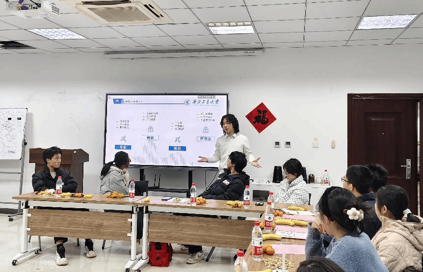 谭肖遥同学结合个人发展经历向新生们分享了自己的大学学习生活经验。讲述了大学学业成绩的重要性、如何平衡学习与社团活动、参与竞赛项目、社会实践等实用技巧。他建议大家在大学四年中一定要找到自己喜欢的事情,留下终生难忘的回忆。他的分享贴近新生实际,赢得了在场同学的共鸣。
